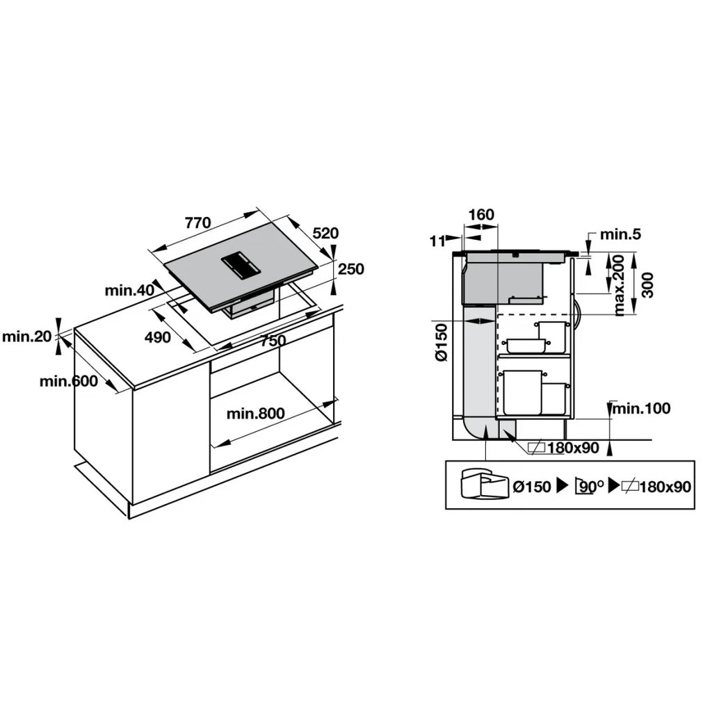 Bếp Điện Từ Hafele HC-IHH77D 536.61.655 Kết Hợp Hút Mùi 4 Vùng Nấu