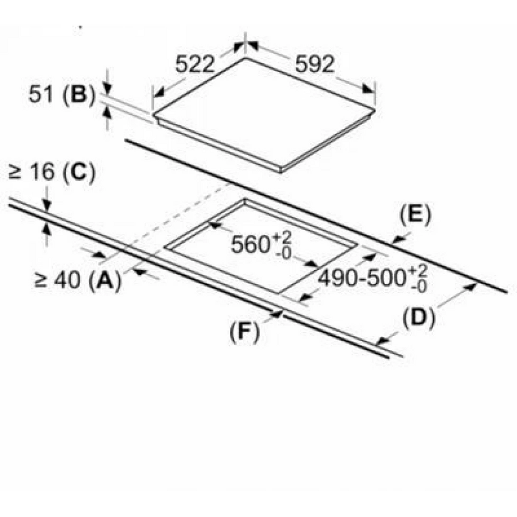 Kích thước lắp đặt (C x R x S: 51 x 560 x 490-500 mm