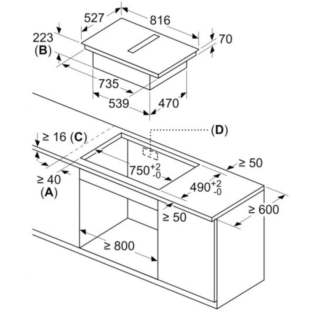 Bếp Từ Kết Hợp Hút Mùi Bosch HMH.PXX875D67E 4 Vùng Nấu Serie 8