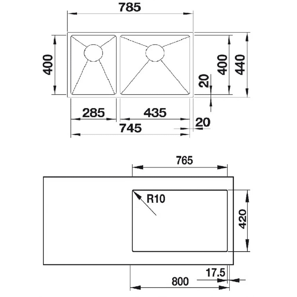 Bồn Rửa Chén Blanco Quatrus R15 285/435-IU 570.27.169 Hai Hộc Inox 304