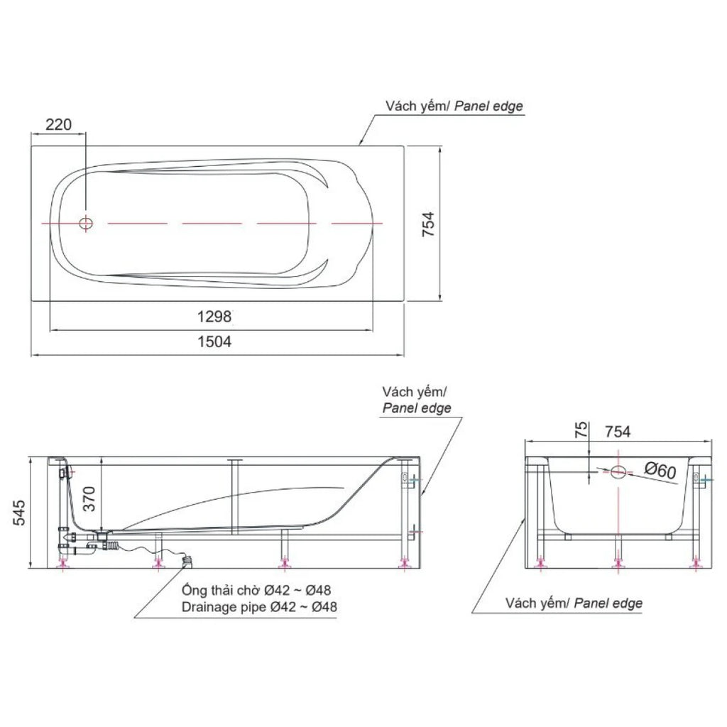 Kiểu dáng: Bồn tắm chân yếm phải