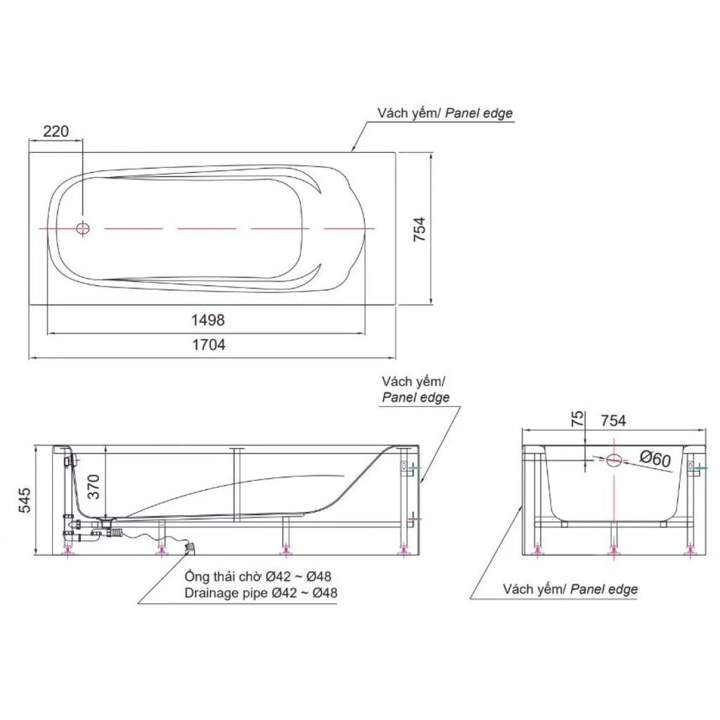 Thông số kỹ thuật Bồn Tắm INAX FBV-1702SR 1.7m