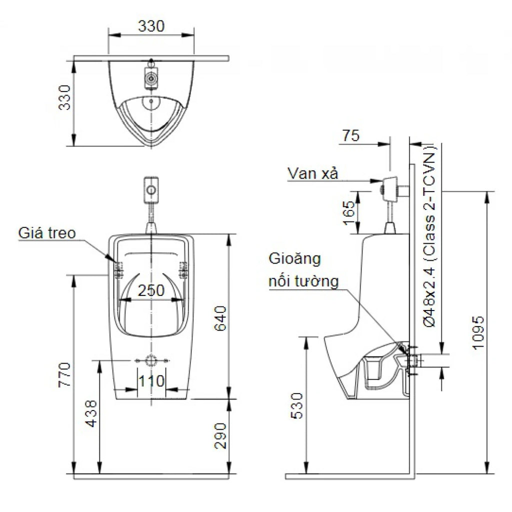 Bồn Tiểu Nam Inax U-431VR Treo Tường Vành Rim
