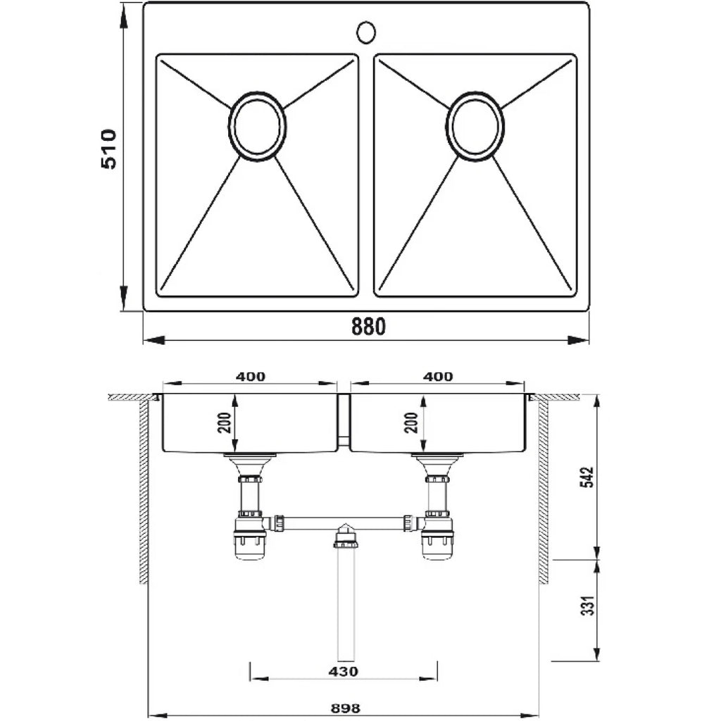 Chậu Bếp Hafele HS20-SSN2S90 567.20.537 Hai Hộc Inox 304