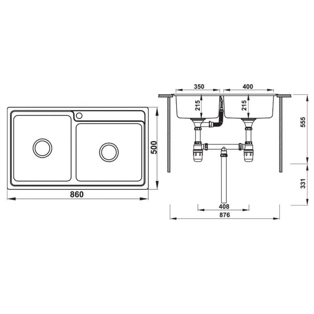Chậu Bếp Hafele HS20-SSN2S90L 567.20.546 Hai Hộc Inox 304