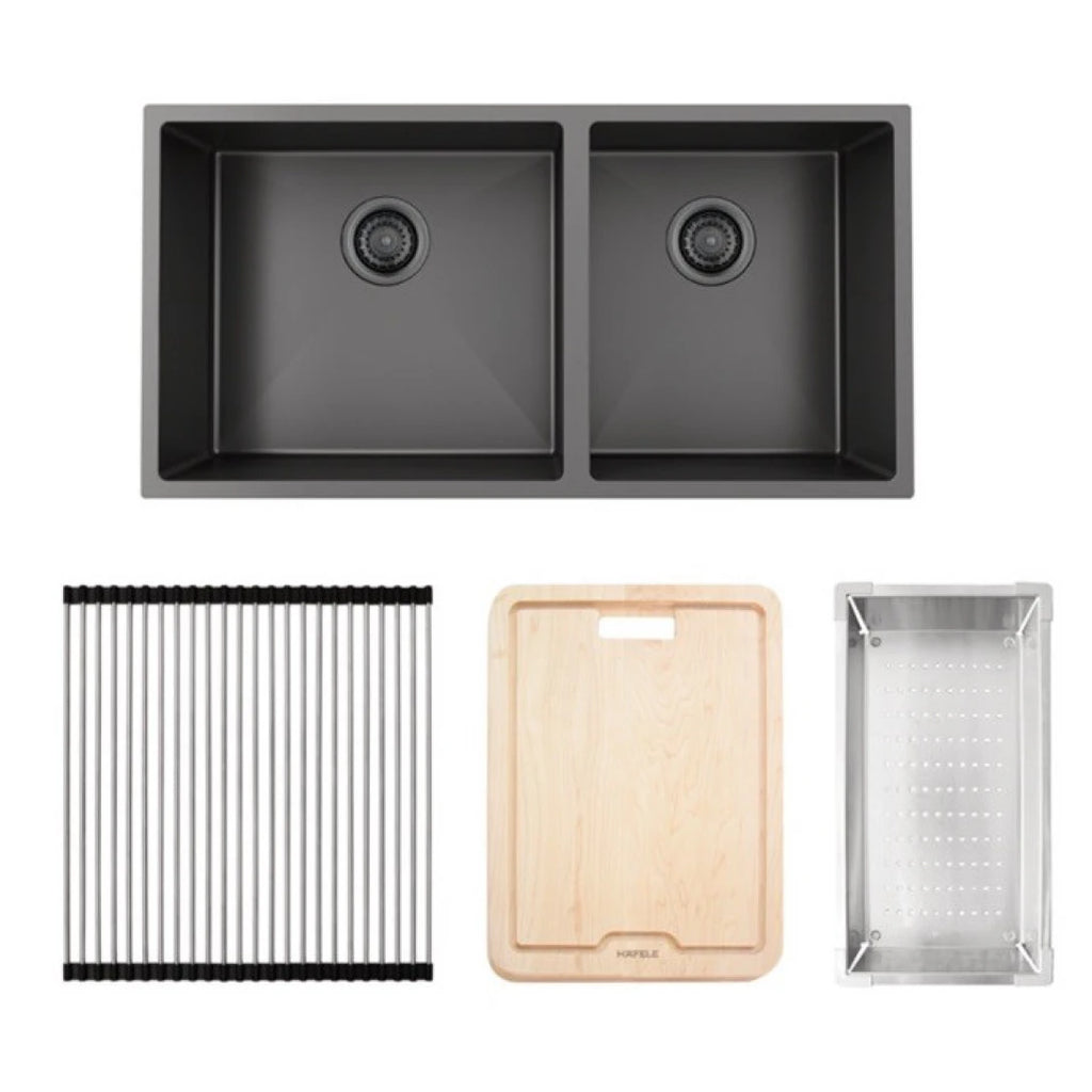 Chậu Bếp Hafele HS21-SSN2S90 567.96.313 Hai Hộc Và Phụ Kiện 860x440 mm Inox 304 Màu Đen