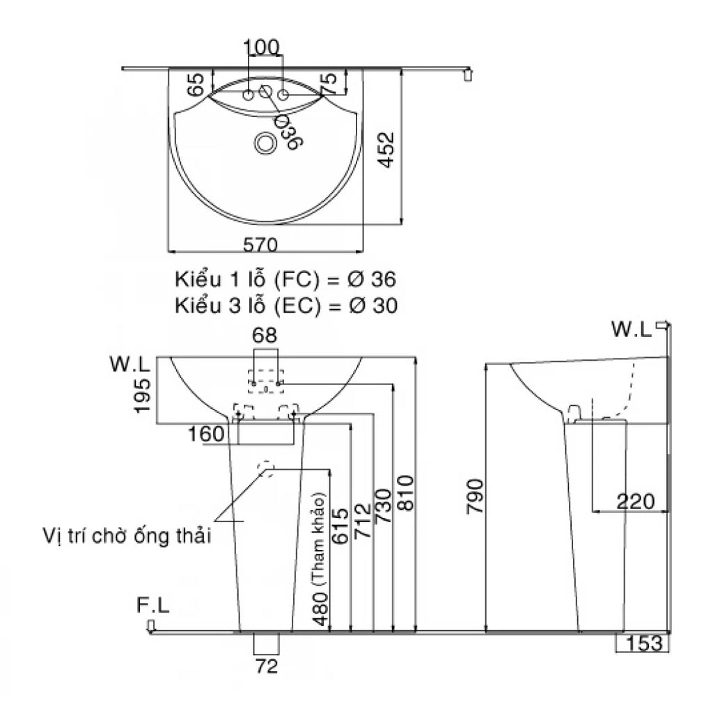 Chậu Lavabo Inax L-288V/L-288VD Treo Tường Kèm Chân Dài