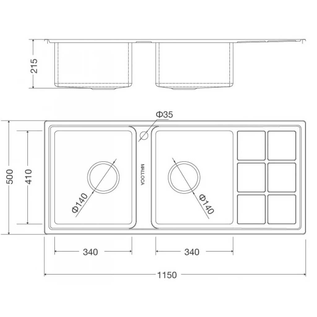 Chậu Rửa Chén Malloca MS 8815R Inox 304 2 Hộc Cánh Phải