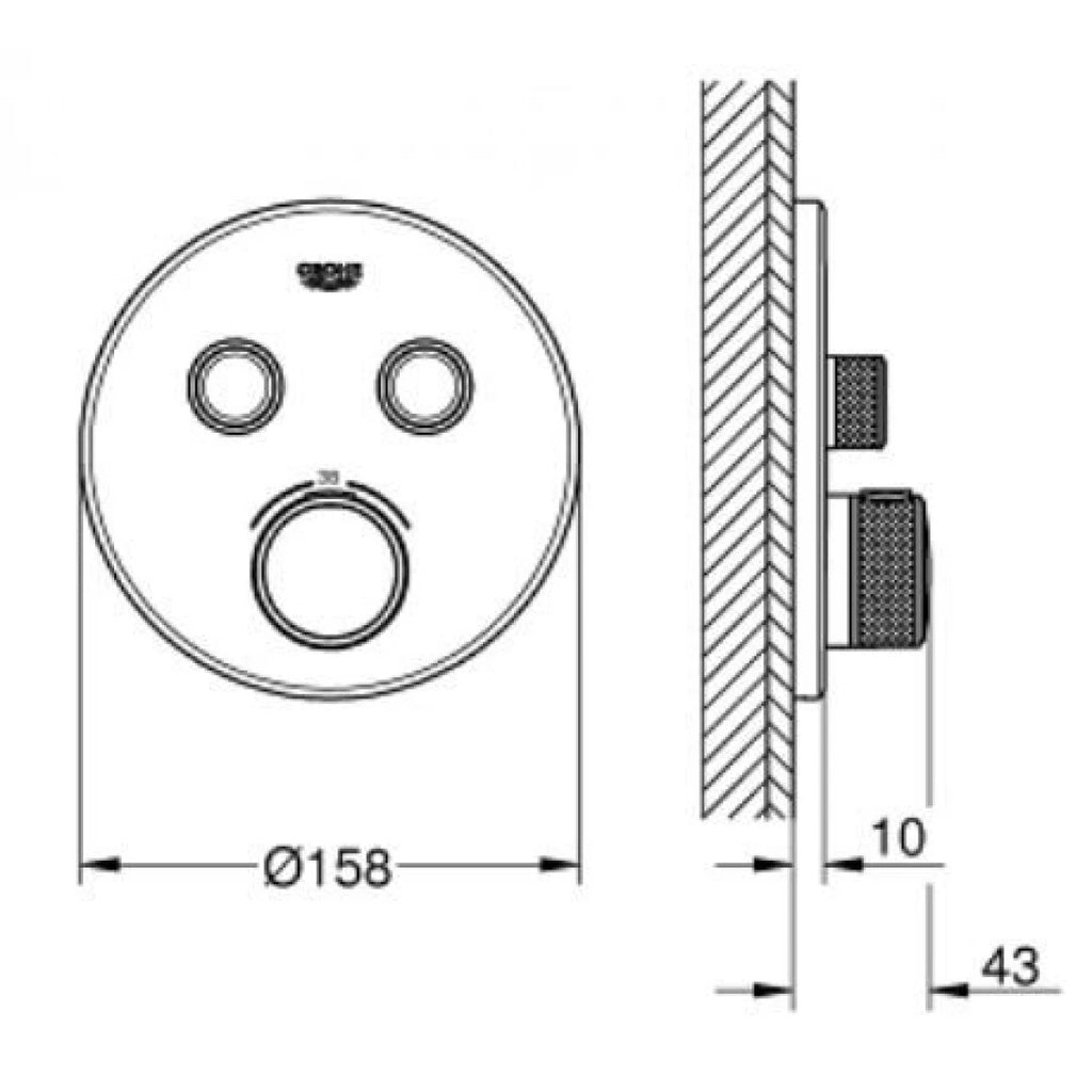 Mặt Bộ Trộn Âm Ổn Nhiệt Grohe SmartControl 29119GL0 Gắn Tường Màu Vàng
