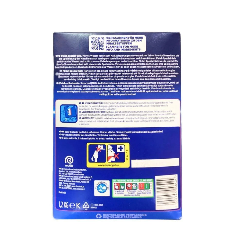 Muối rửa bát Finish được thiết kế chuyên biệt để ngăn cặn vôi, tạp khoáng tích tụ trong máy rửa bát và bảo vệ chén bát tốt hơn 100%*. Độ tinh khiết 99% và chất lượng cao cấp của Muối sẽ giúp làm sạch nguồn nước hiệu quả, không bị đóng cặn vôi bằng phương pháp làm mềm nước cứng. Sử dụng muối rửa bát Finish thường xuyên sẽ đảm bảo chất tẩy rửa hoạt động tốt hơn, ngăn ngừa các vết cặn bám lại, giúp quá trình làm sạch bát đĩa hiệu quả hơn (so với chỉ sử dụng sản phẩm tẩy rửa chén bát).