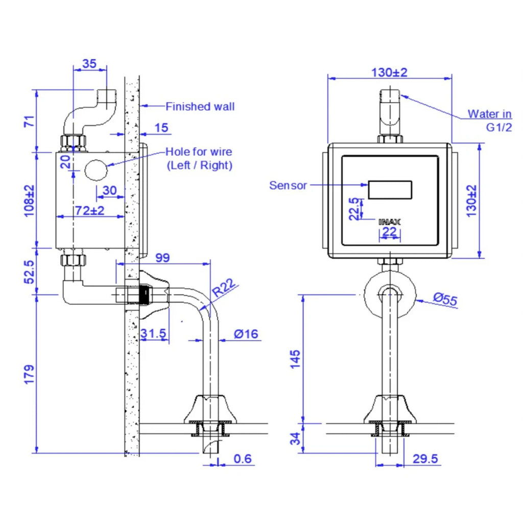 Bản vẽ kỹ thuật van xả tiểu âm tường INAX OKUV-30SM-0.5