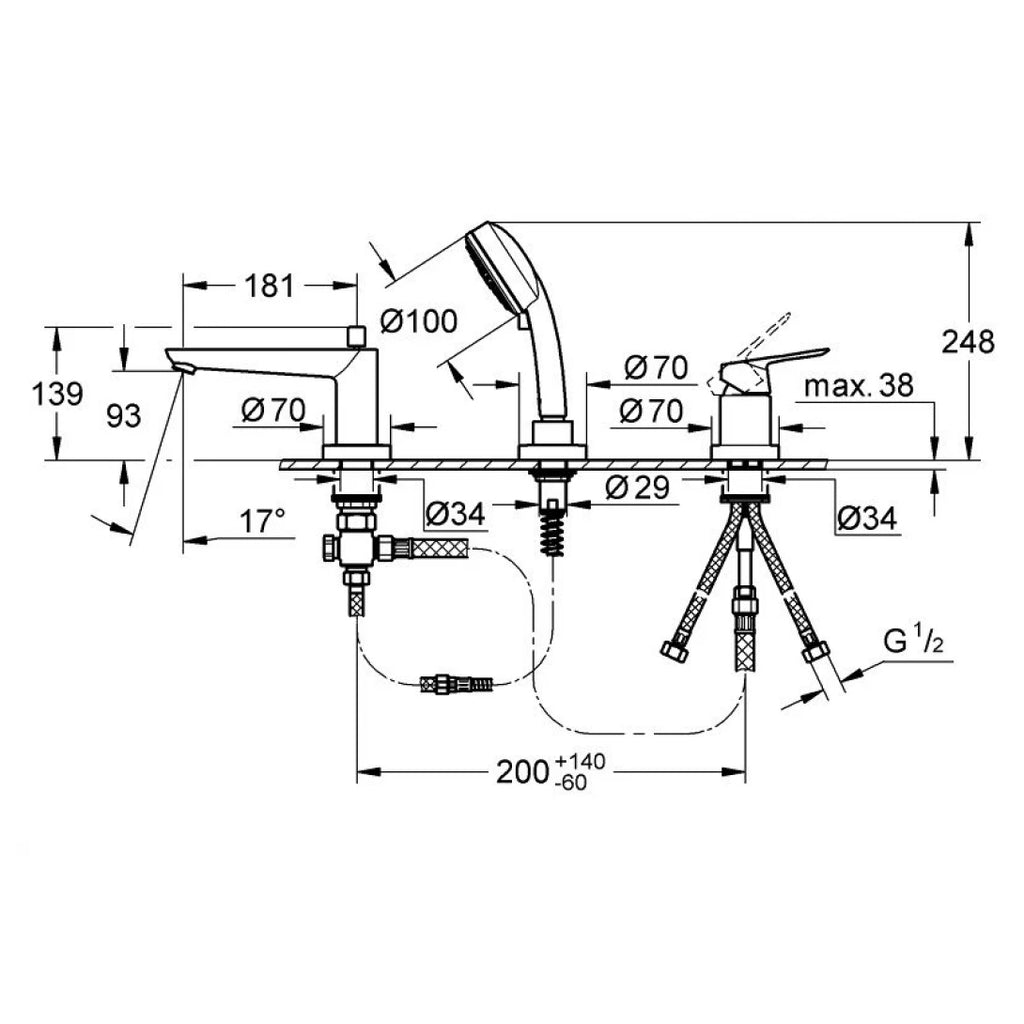 Vòi Bồn Tắm Grohe 2511700A BauEdge OHM 3 Lỗ