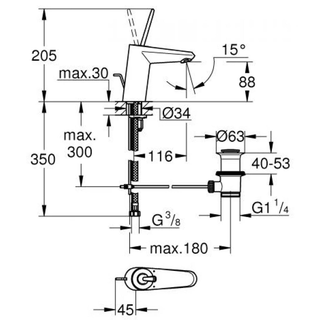 Bản vẽ kích thước vòi lavabo 23427000 Grohe EUD Joystick OHM