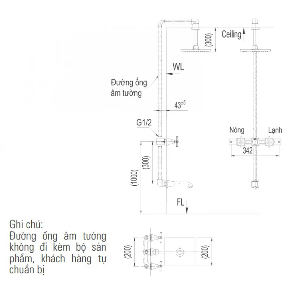 - Kiểu: Sen tắm âm tường, nóng lạnh