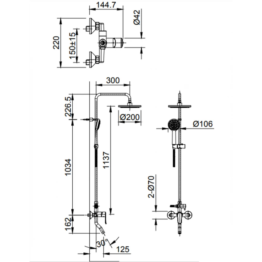 Bản vẽ kỹ thuật Vòi Sen Tắm Cây Inax BFV-2015S (BFV2015S) Nóng Lạnh