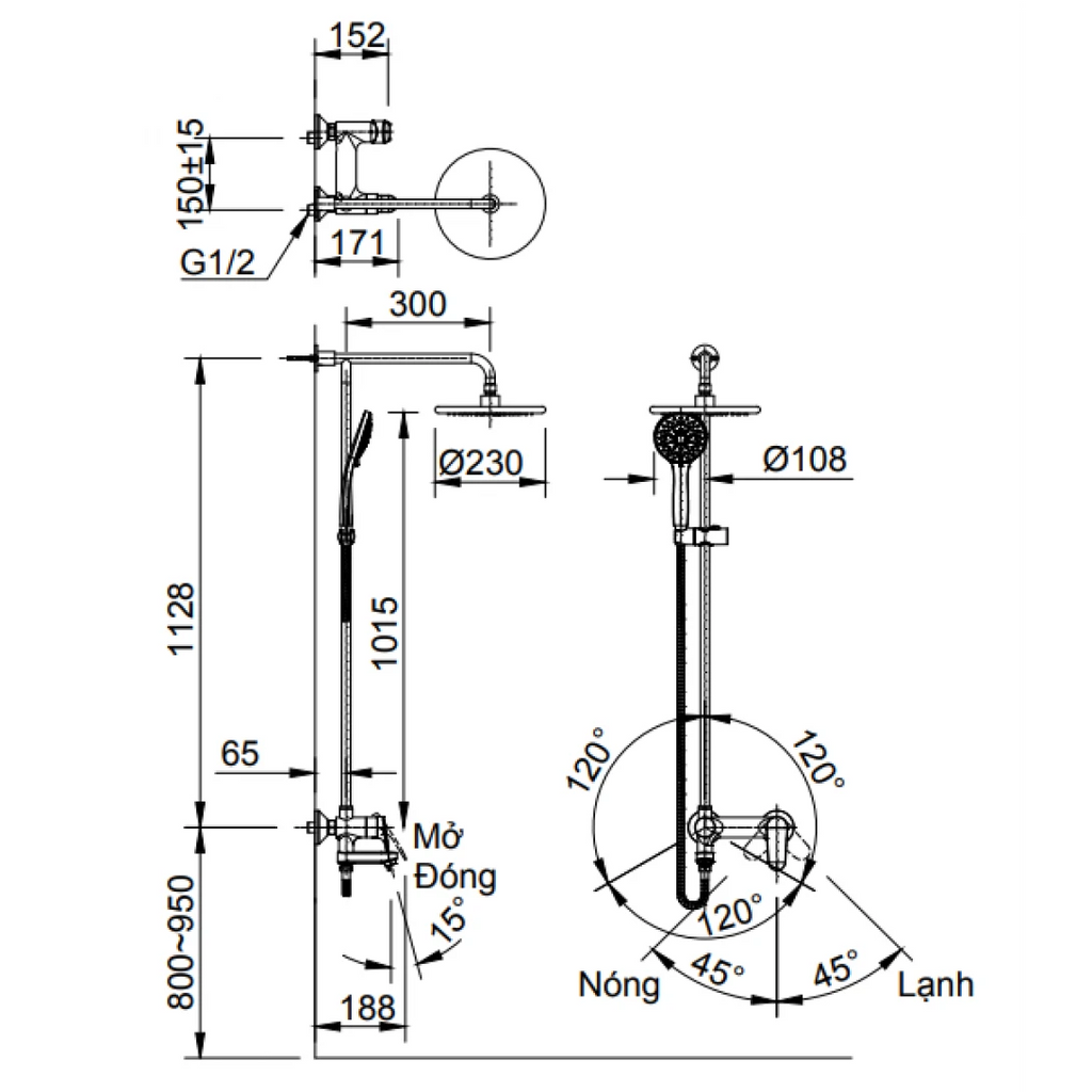 Bản vẽ kỹ thuật sen cây INAX BFV-915S
