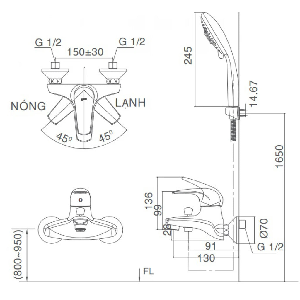 Vòi Sen Tắm Nóng Lạnh INAX BFV-3003S-3C – Tay Sen Massage, Phun Tia Mạnh Mẽ & Bền Bỉ