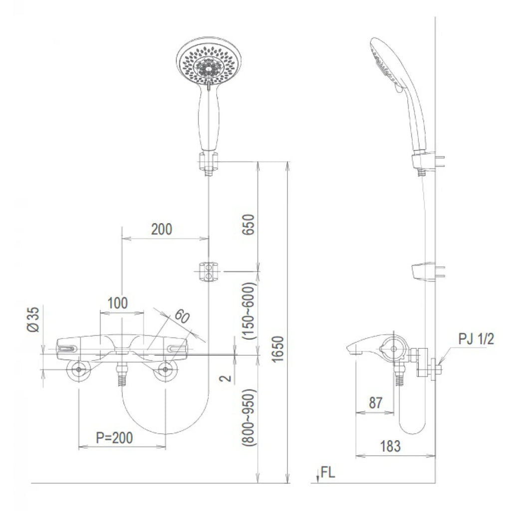 Bản vẽ kỹ thuật Vòi Sen Tắm Nóng Lạnh INAX BFV-5103T-3C