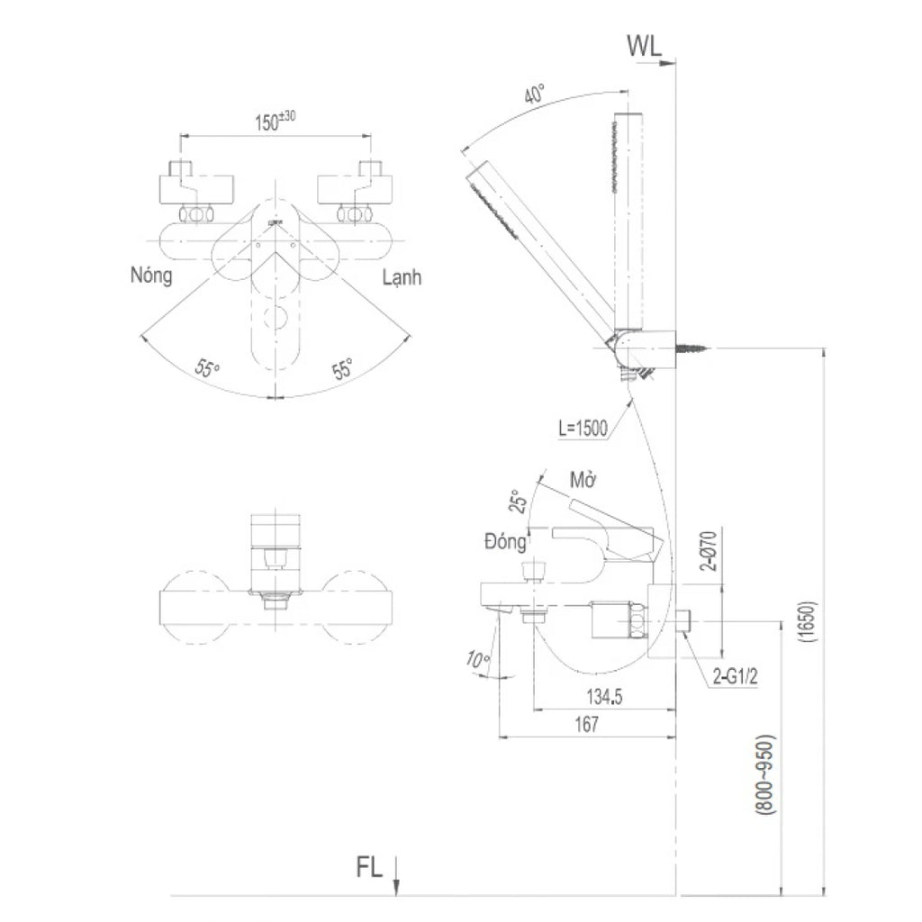 Bản vẽ kỹ thuật Vòi Sen Tắm INAX BFV-6003S